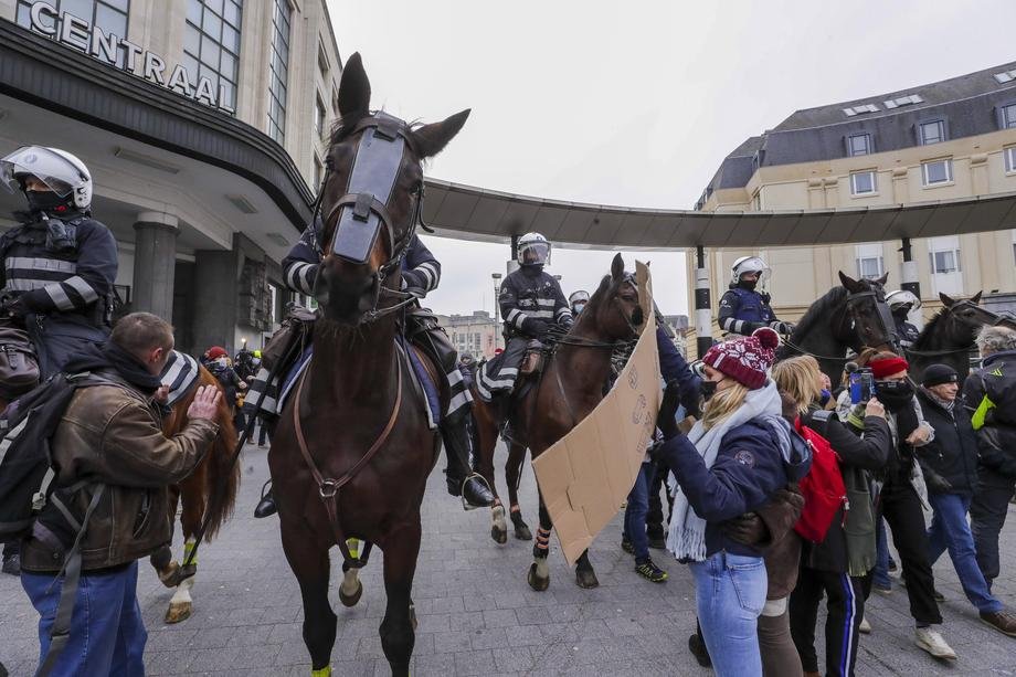 HAOS U BRISELU: Demonstracije zbog kovid mera, policija privela 300 ljudi (FOTO)
