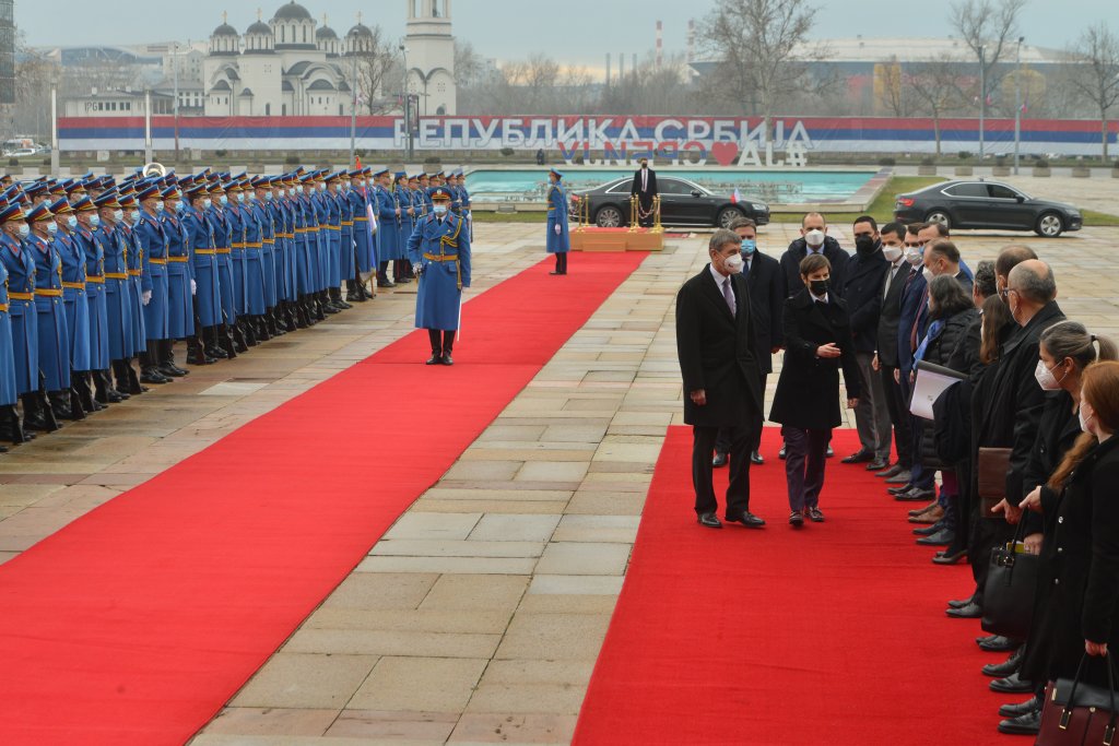 BRNABIĆ DOČEKALA BABIŠA: Svečano ispred Palate Srbije - intonirane himne dve zemlje (FOTO)