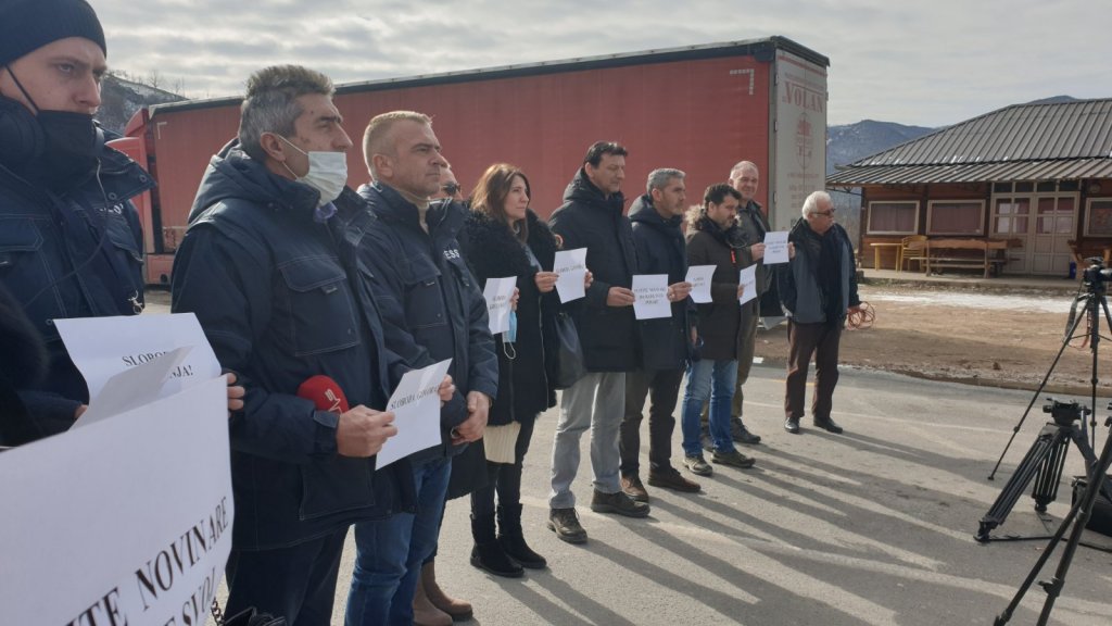 ZBOG ZABRANE PROLASKA EKIPI RTS: Protest predstavnika medija na Jarinju (VIDEO)