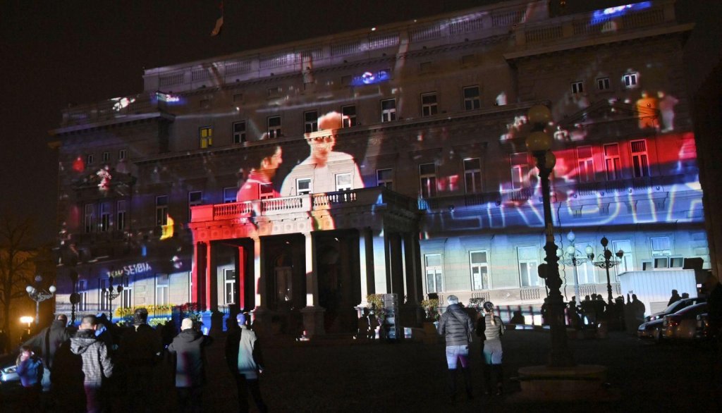 NOLE GOST SKUPŠTINE GRADA, PROJEKCIJA NA FASADI: Beograd slavi najboljeg tenisera sveta svih vremena (FOTO)