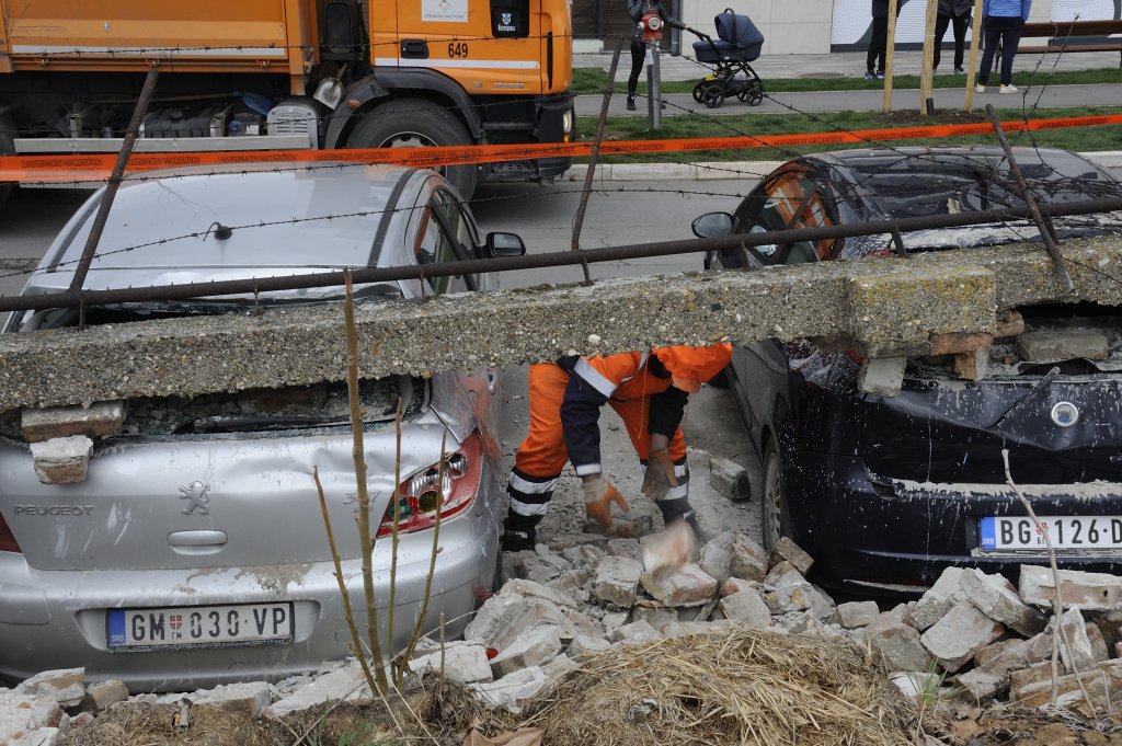 ZASTRAŠUJUĆI SNIMCI IZ ZEMUNA: Pao zid stadiona fudbalskog kluba, oštetio osam automobila - u toku raščišćavanje (VIDEO)