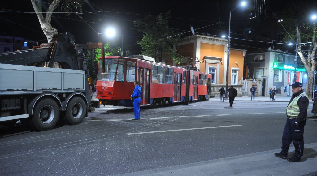 TRAMVAJ POKUŠAVAJU DA VRATE U ŠINE: Dizalice i viljuškari na mestu nezgode na Dorćolu (FOTO)