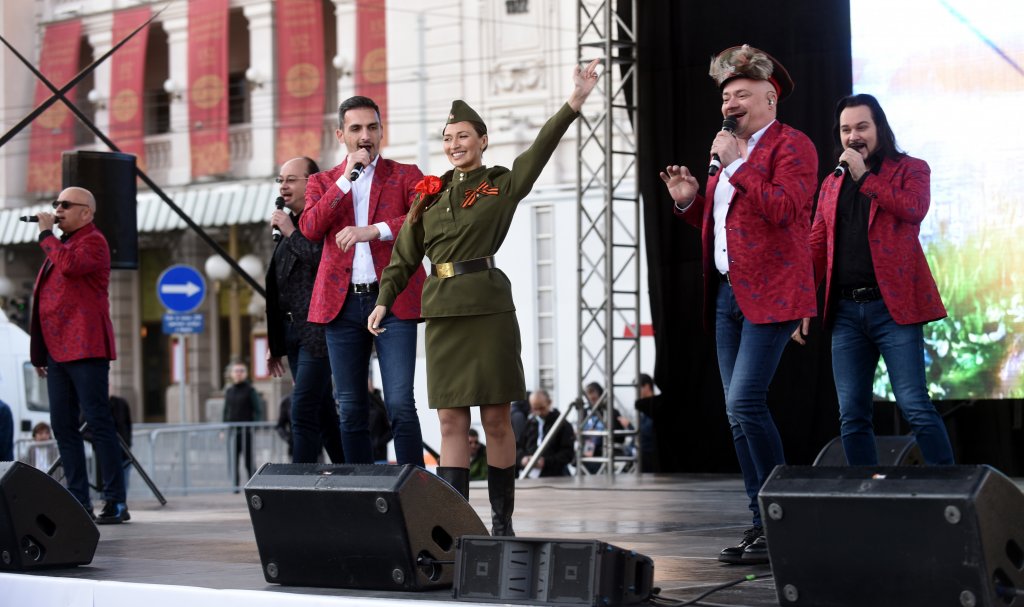 SLEDEĆI PUT PEVAMO NA SRPSKOM JEZIKU: Ruski hor "Turecki" povodom Dana pobede nastupio na Trgu republike (FOTO)