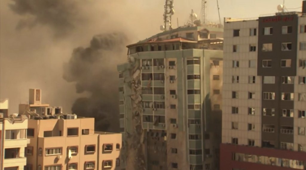 UZNEMIRUJUĆI SNIMAK IZ GAZE: Zgrada u kojoj su bili mediji pada kao kula od karata (FOTO/VIDEO)