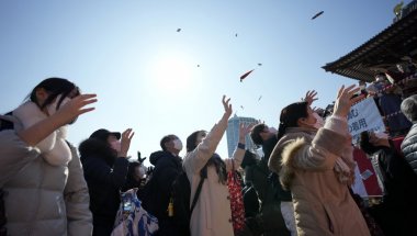 Bacači pasulja šetaju pre „Mamemaki“ ceremonije u budističkom hramu Zojođi u Tokiju, a nakon toga pokušavaju da uhvate srećni pasulj koji su rasule poznate ličnosti tokom rituala.