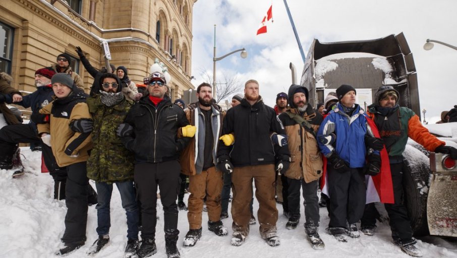 Kanadska policija čini poslednje napore da ukloni demonstrante iz Otave koji blokiraju grad parkiranjem i kampovanjem na ulicama već tri nedelje. Policija je uhapsila skoro 200 demonstranata.