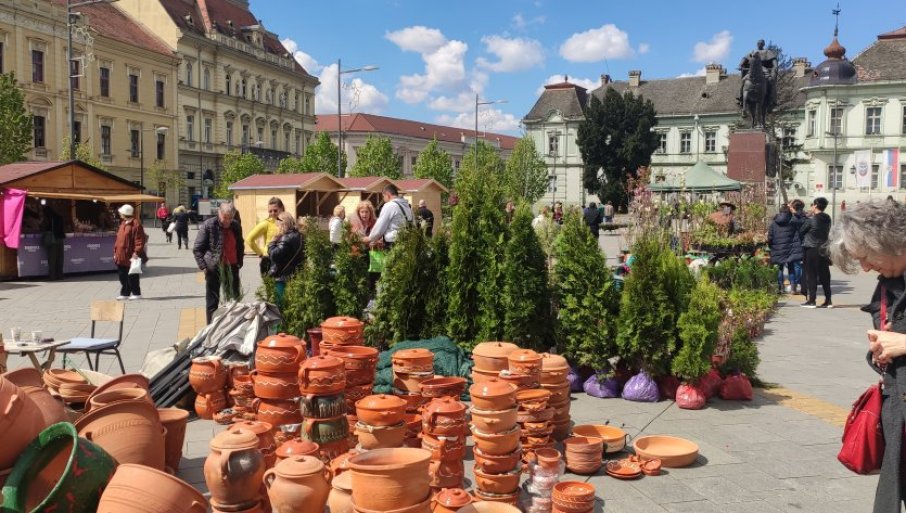 Prodavci iz cele Vojvodine, ali i pojedinih delova Srbije, na trgu ispred Gradske kuće u centru Zrenjanina, izložili su više desetina različitih vrsta cveća, saksija i ukrasa za terase i bašte.