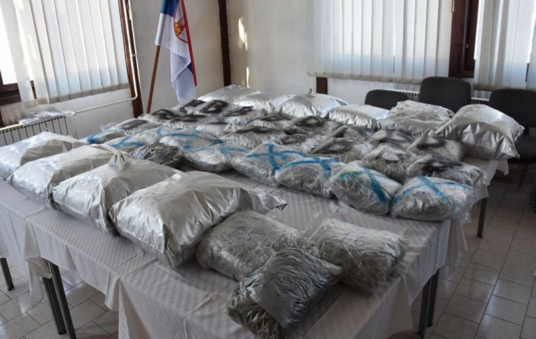 PRIPADNICI Ministarstva unutrašnjih poslova u Novom Pazaru efikasnim radom zaplenili su oko 63 kilograma marihuane i uhapsili B. P. (2000) i V. M. (1987), državljane Republike Crne Gore, i N. U. (1995), H. H. (1997) i S. K. (1986), svi iz Tutina, zbog postojanja osnova sumnje da su izvršili krivično delo neovlašćena proizvodnja i stavljanje u promet opojnih droga.