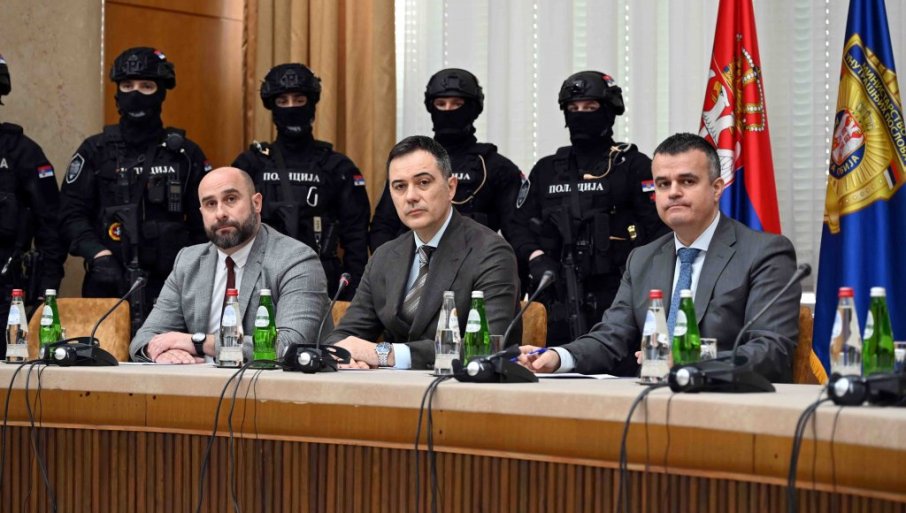 - Privedeni su Milinko Brašnjović, Dušan Jovanović Giba, Dragan Tomić zvani Vojnik, Vladimir Vojnović, Slobodan Vujačić, Vladimir Mandić, Nataša Dedić, Rade Stojićević i Abaz Rabin - saopštio je na konferenciji za novinare načelnik UKP MUP Ninoslav Cmolić. - Kao organizatori ove kriminalne grupe osumnjičeni su Radoje Zvicer, Darko Šarić i Veljko Belivuk.