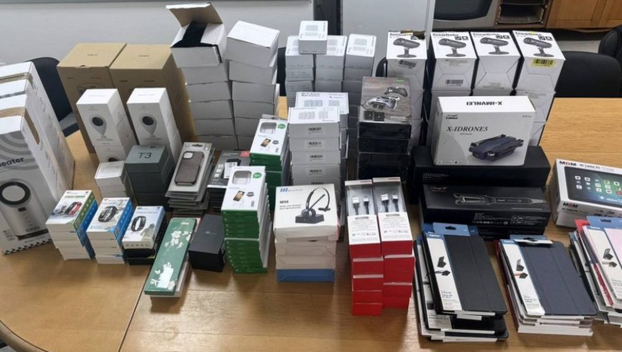 Do okončanja postupka pokrenutog protiv putnika pred nadležnim sudom, privremeno je zadržano preko 200 originalno upakovanih artikala različitih robnih marki: grejača prostora, unutrašnjih kamera, mini klima, muških i ženskih smart-fitnes satova, bežičnih slušalica, tablet računara, led-projektora, aparata za oblikovanje kose, pa čak i jedan dron sa kamerom, čija je ukupna vrednost procenjena na skoro 17.000 evra.