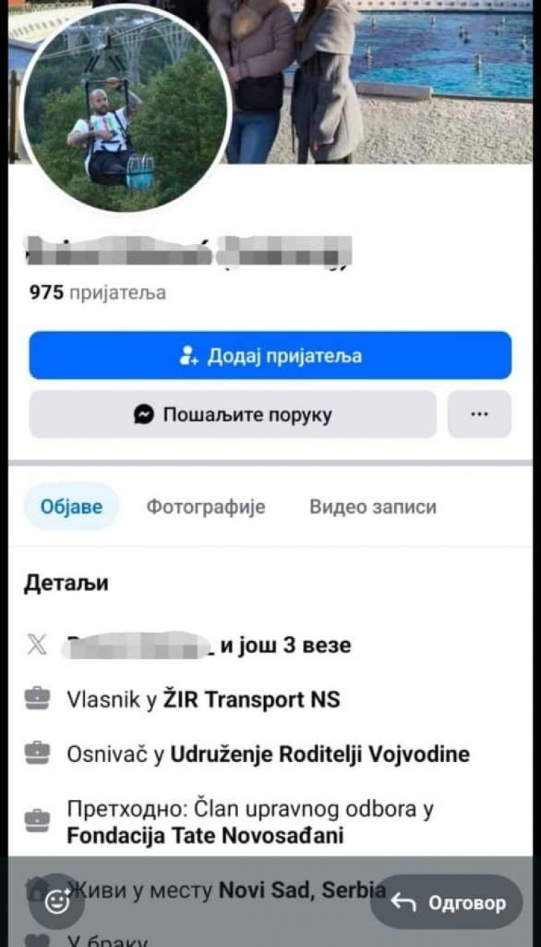 Uhapšeni R.B. je trenutno vlasnik jednog transportnog preduzeća i osnivač je Udruženja Roditelji Vojvodine.