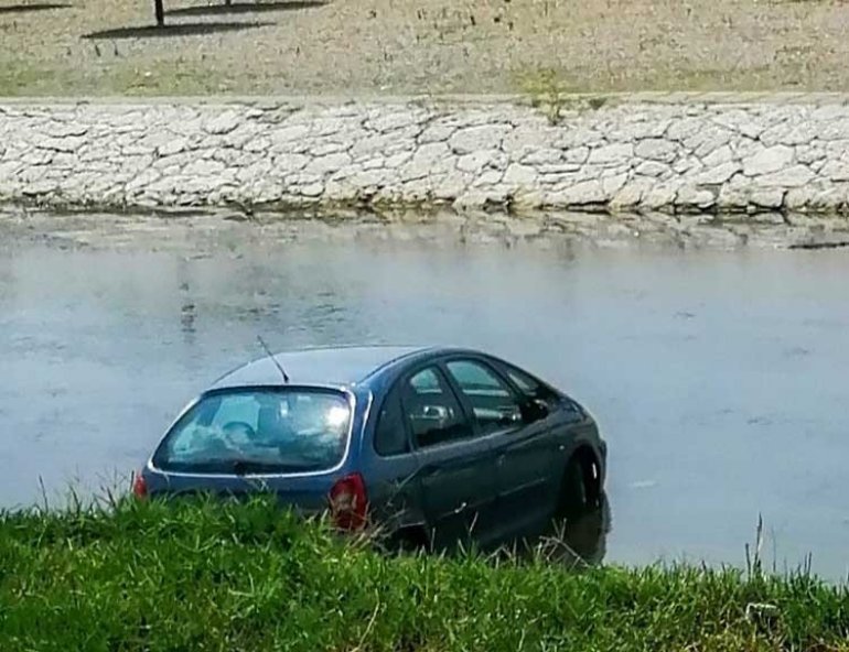 AUTOMOBIL ‘’citroen’’, kojim je upravljao vozač srednjih godina, prešao je danas na suprotnu stranu puta i sleteo u Timok, nedaleko od Popove plaže u Zaječaru.