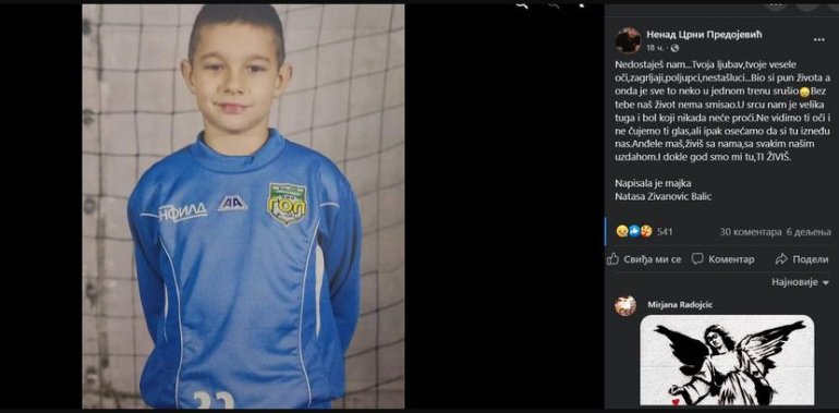 - Nedostaješ nam... Tvoja ljubav, tvoje vesele oči, zagrljaji, poljupci, nestašluci... Bio si pun života a onda je sve to neko u jednom trenu srušio. Bez tebe naš život nema smisao. U srcu nam je velika tuga i bol koji nikada neće proći. Ne vidimo ti oči i ne čujemo ti glas, ali ipak osećamo da si tu između nas. Anđele naš, živiš sa nama, sa svakim našim uzdahom. I dokle god smo mi tu, TI ŽIVIŠ - napisala je Nataša Živanović Balić.