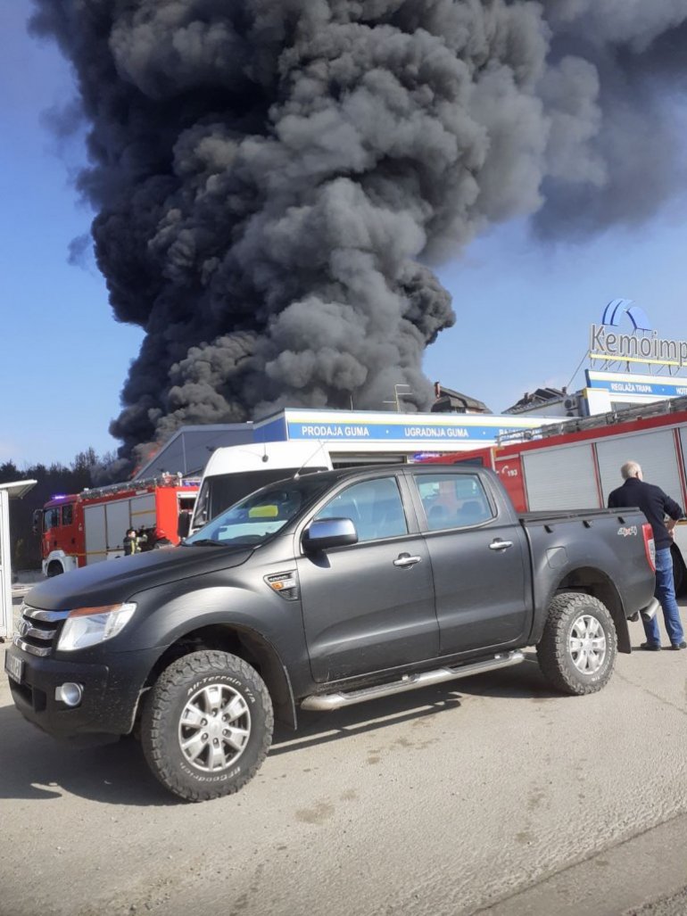 Dojava o požaru je stigla oko 12.10 časova. Dolaskom prvih ekipa u 12.16 časova gasio se požar koji je obuhvatio prostor veličine oko 1.500 metara kvadratnih u preduzeću koje se bavi prodajom i montažom guma.