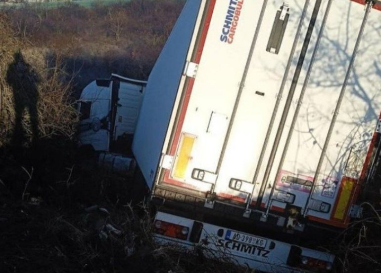 - Kamion je sleteo sa puta na travu pored i prevrnuo se na desni bok. Moguće da je uzrok poledica na putu, jer je jutros bilo izuzetno klizavo - rekao je jedan od očevidaca.