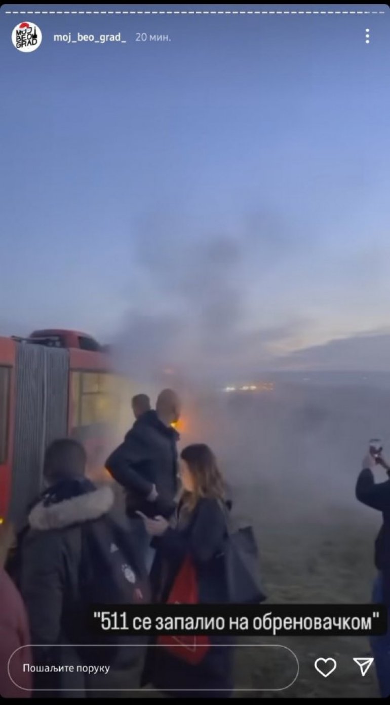 LINIJA gradskog prevoza 511 zapalila se u ranim jutarnjim časovima na Obrenovačkom putu, piše Instagram stranica Moj_Beograd.
