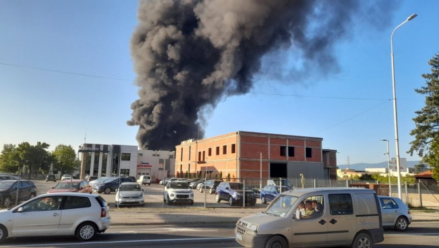 Veliki požar izbio je u fabrici boje i lakova "Nevena kolor" u Leskovcu. Svo raspoloživo ljudstvo i vatrogasna vozila su na terenu, očekuje se ispomoć iz drugih gradova.
