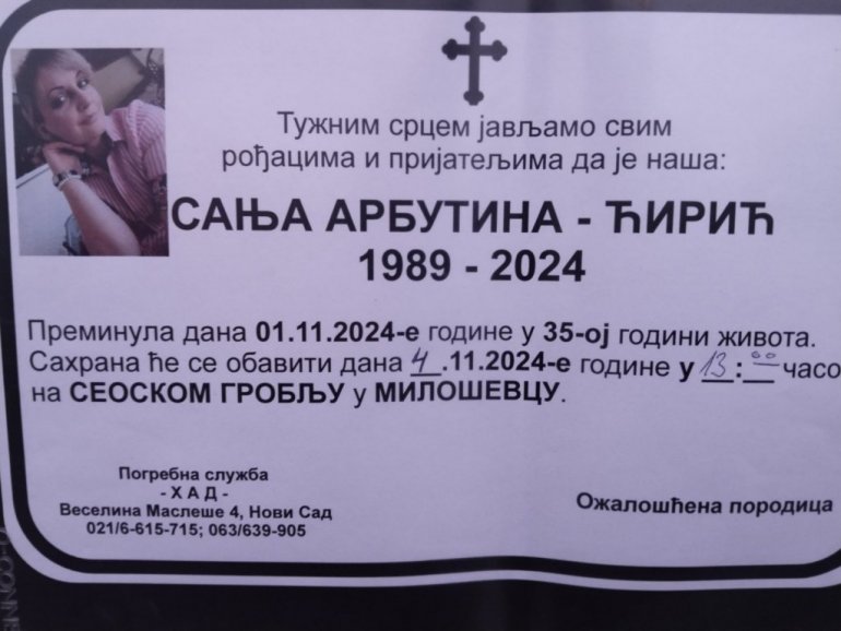 SANjA Arbutina Ćirić (1989) iz Kaća jedna je od 14 nastradalih na Železničkoj stanici u Novom Sadu, kada se obrušila stara nadstrešnica.