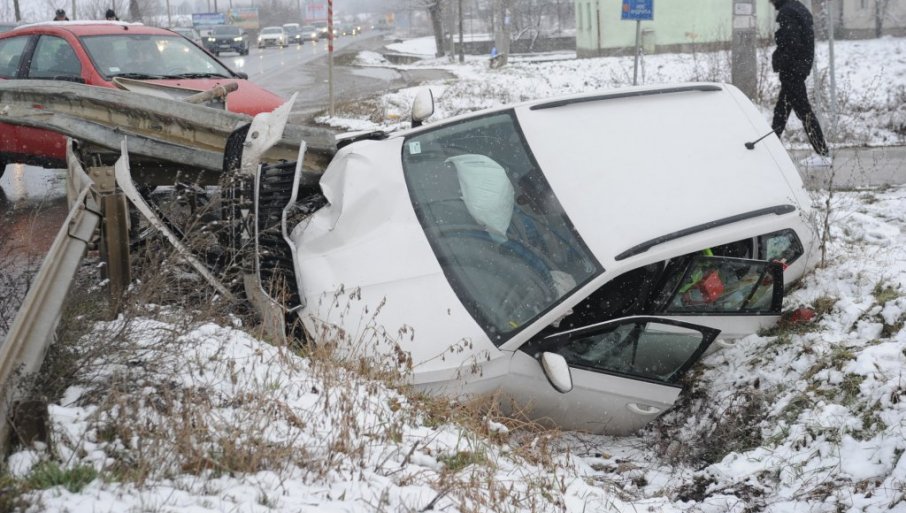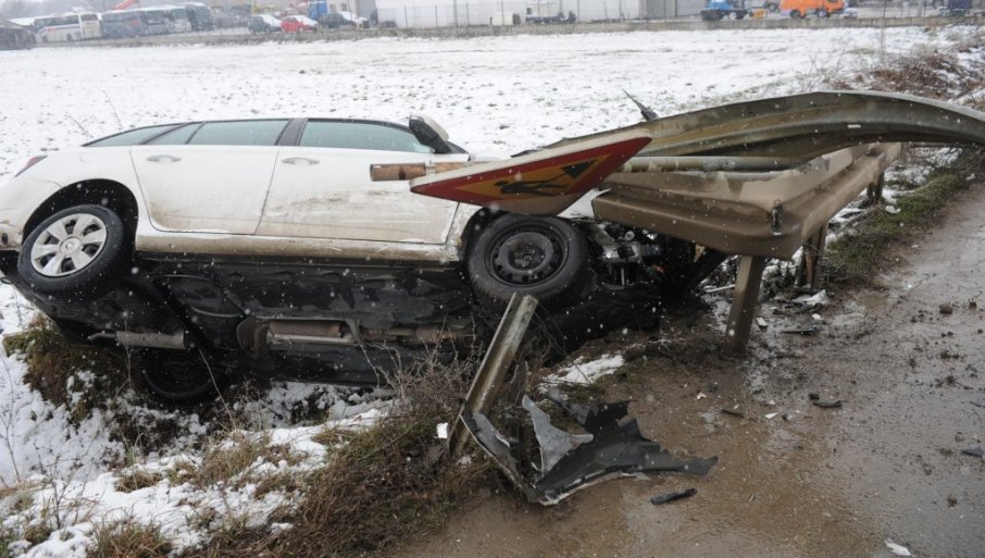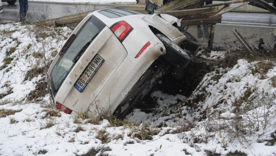 AUTO SE PREVRNUO PORED PUTA: Udes u Adranima na Ibarskoj magistrali (FOTO)