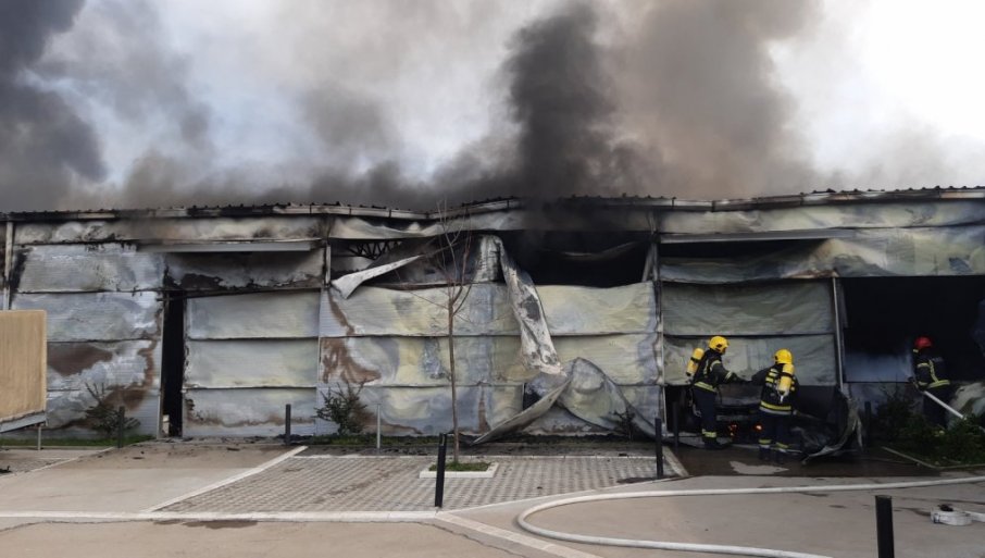 Podsetimo, dojava o požaru je primljena u 15:36. Požar je izbio u ulici Patrijarha Dimitrija bb, a zapalio se veliki magacin.
