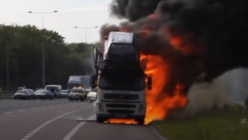 ZAPALJENI KAMION JURI PO PUTU: Šokantan snimak - evo šta je vozač uradio dok je plamen gutao vozilo (VIDEO)