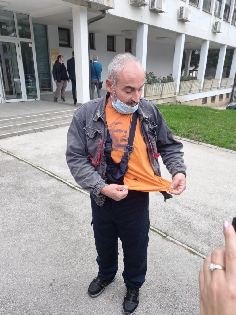 Kao i svaki put do sada, kada je krenuo na suđenje, generalnog direktora ovog vojnog preduzeća, ispratili su radnici koji mu daju punu podršku.