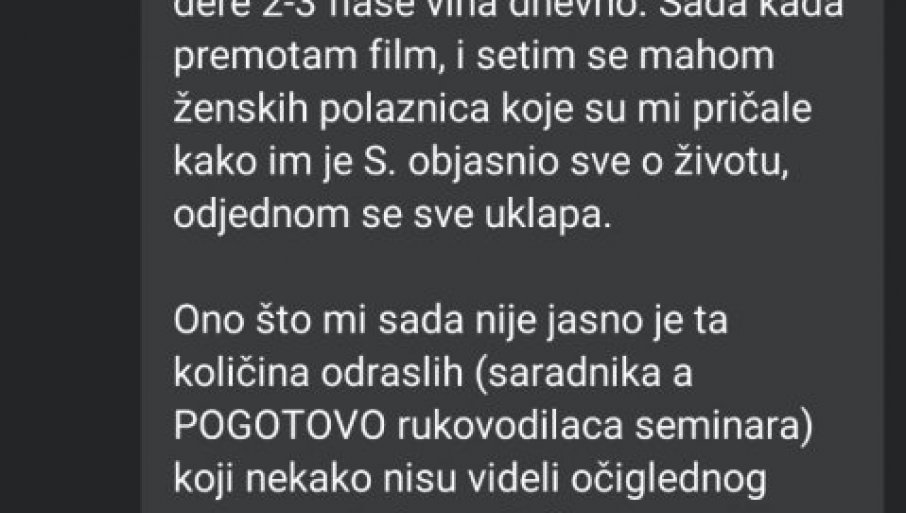- Petnica je mesto gde nisu samo polaznici bili uznemiravani i napadani, već i asistenti. Toliko sam stvari tamo videla svojim očima i saznala iz druge ruke neke gadosti da sam bila uverena da je sve to „javna tajna“ - stoji u jednom od komentara.