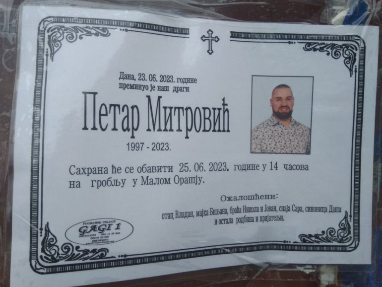 Dvadesetšestogodišnji Petar je deveta žrtva masovnog ubice iz Dubone Uroša Blažića (20).