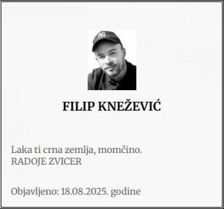 Radoje Zvicer (45), vođa "kavačkog klana" dao je čitulju Filipu Kneževiću (36), koji je ubijen je 15.jula u Barseloni.