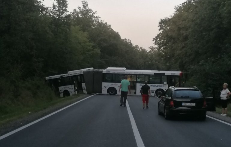 Iz za sada nepoznatih razloga došlo je do zanošenja zadnjeg dela autobusa koji je potom sleteo sa puta i na taj način blokirao ulaz u Beograd iz ovog smera.