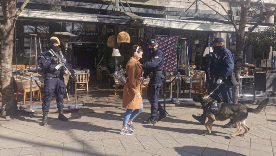 Kako sa terena javlja reporter "Novosti" ispred "Kasine" je doveden i veliki broj istreniranih policijski pasa.