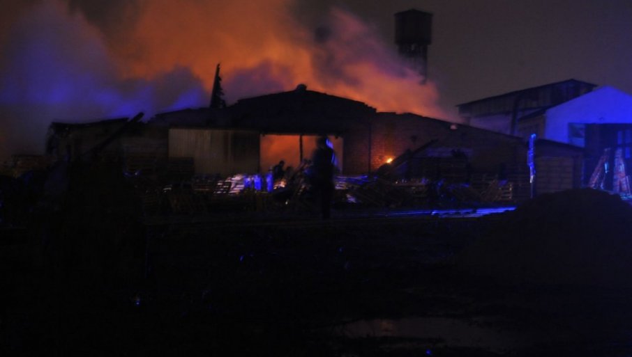 Kako saznajemo, požar je izbio u magacinskom prostoru, u hali gde se nalazi građevinski materijal.