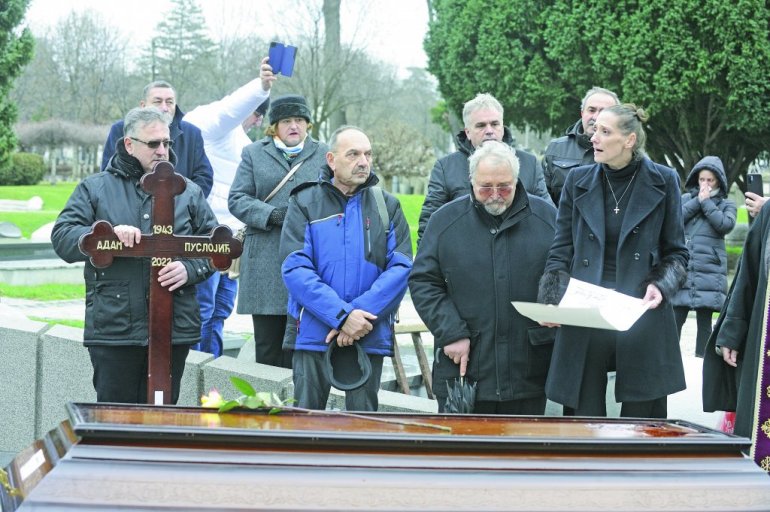 - Okupili smo se pred ovim svetim zdanjem da ispratimo na poslednje putovanje velikog čoveka i velikog pesnika Adama Puslojića koji je krenuo "uzvisno", ka nebu. Davni naslov jedne od njegove trideset tri knjige, onoliko ih je koliko je Isus imao zemaljskih godina, glasi: "Padam ka nebu". Zar je malo simbolike u te tri reči: Puslojić Adam ka nebu - rekao je okupljenima pesnik Bratislav R. Milanović, i nastavio: - Nemojte tugovati. Ko je pažljivo pratio ono što je Adam pisao poslednjih godina zna da je to bila jedna duga priprema za konačni odlazak. On je znao kada će da ode. Znao je da će to biti poslednji dan godine koja je upravo istekla. Poslednja njegova pesma, koju nam je uputio kao kakvu poslanicu 21. decembra godine koja je tek minula, počinje stihovima:
