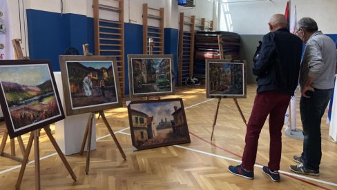 Osim umetničkih slika, ikona i vajarskih dela, na likovnoj izložbi u prostorijama OŠ "Sveti Sava" su bile izložene i zastave Sabora iz proteklih godina.