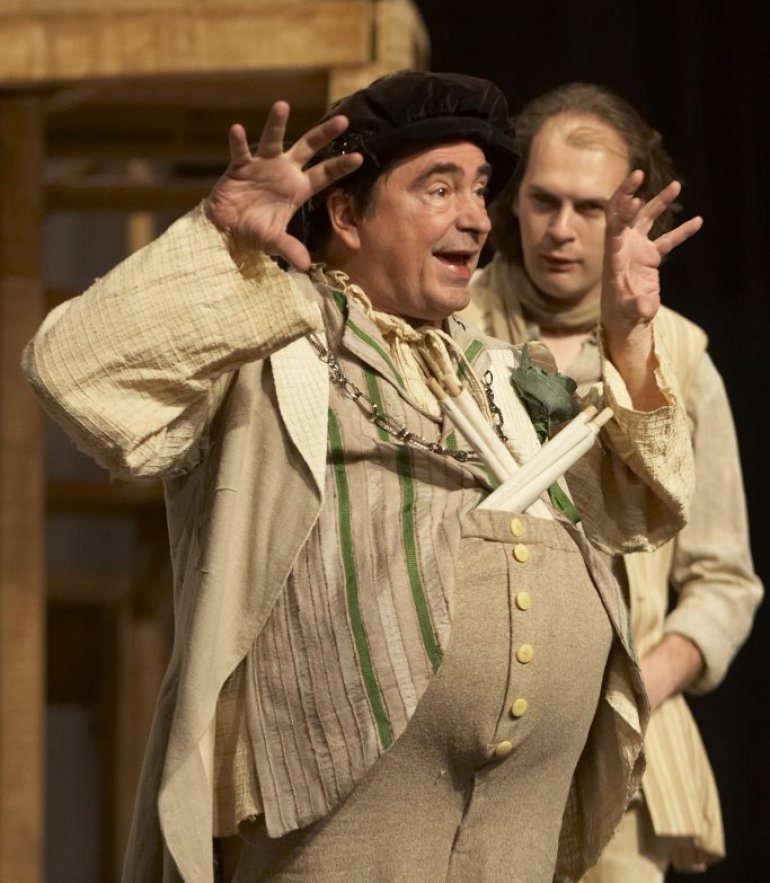 "U "Zlatnom teletu", Iljfa i Petrova, u režiji Gorana Markovića, na sceni Narodnog pozorišta, pomalo je, šeretski i prisno, kako je samo on znao, zaigrao Ostapa Bendera, velikog kombinatora, kao samoga sebe.