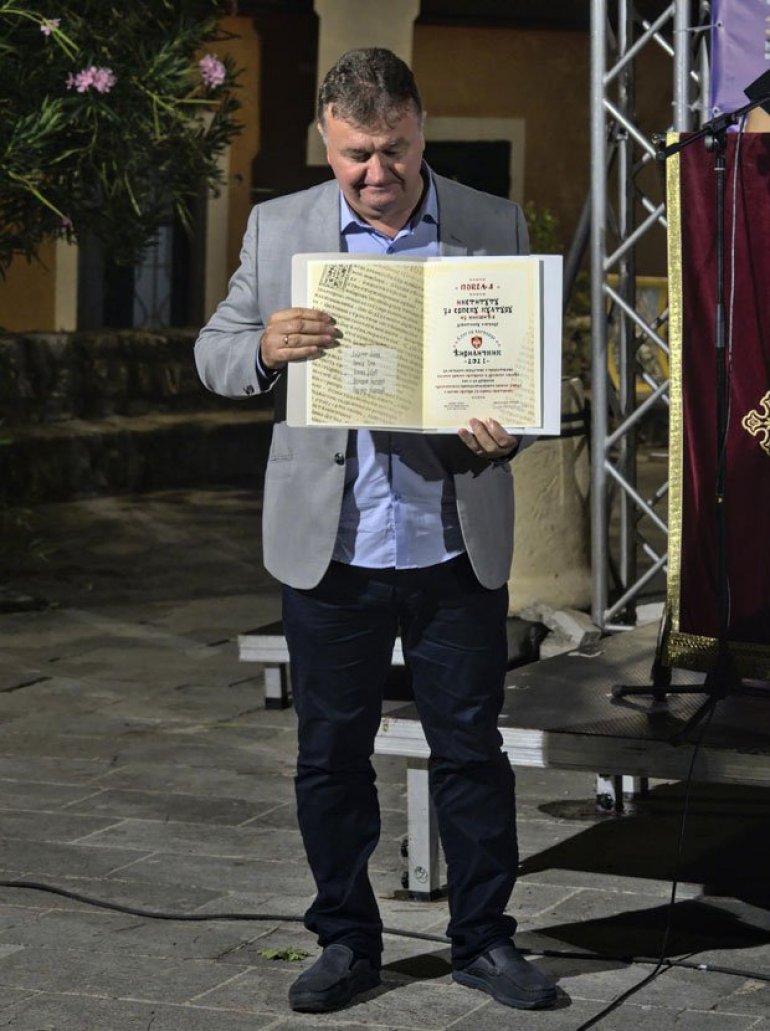 TEMELJ NA SRPSKOJ KULTURI I JEZIKU: Nagrade Milutinu Mićoviću i Institutu za srpsku kulturu iz Nikšića na manifestaciji u Herceg Novom