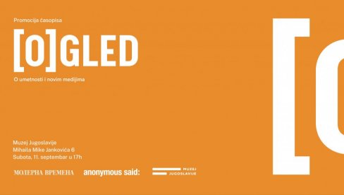 ČASOPIS o novim medijima i umetnosti "(O)gled", biće predstavljen u subotu, 11. septembra, u 17 časova u Muzeju Jugoslavije.
