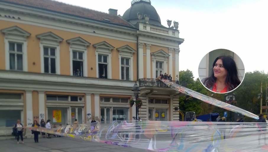 POLJUPCI NAD KNEZ MIHAILOVOM: Performans profesorke Vesne Knežević ispred Galerije Fakulteta likovnih umetnosti