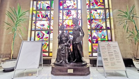 Figura "Dve muze" Đorđa Jovanovića dominiraju ulaznim holom palate SANU, Foto Dragan Milovanović