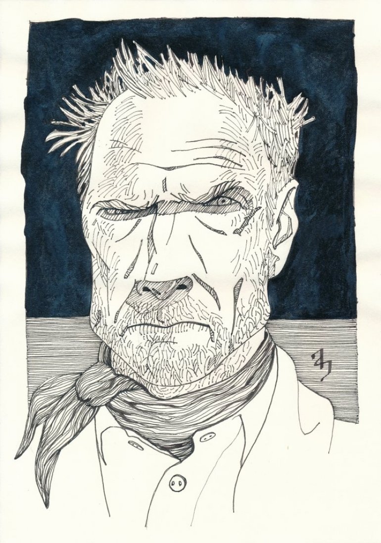 Njegov pogled je i negov "potpis", prosto zove na crtanje, pa sam pokušao to da "uhvatim", nadam se da je uspelo. Ovaj portret je moj mali omaž, posveta velikom majstoru, želeo sam da mu se zahvalim. Hvala ti Klinte.
