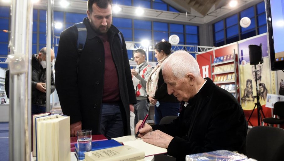 MATIJA Bećković je danas na Sajmu knjiga čitaocima potpisivao svoju najnoviju knjigu "Onamo namo".