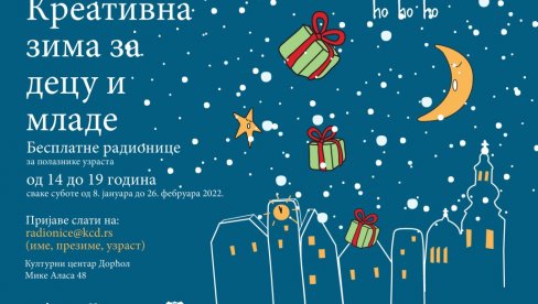 SVAKE subote, tokom januara i februara, održavaće se besplatne radionice za decu i mlade u Kulturnom centru Dorćol i prostorijama Galerije H vitamin: radionice su osnovane s namerom da prolaznicima omoguće da kroz kreativan rad se edukuju u oblastima video žurnala, kaligrafije i istorije umetnosti.