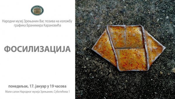 U MALOM salonu Narodnog muzeja u Zrenjaninu, u ponedeljak od 19 sati svečano će biti otvorena izložba grafika "Fosilizacija", autora profesora Branimira Karanovića