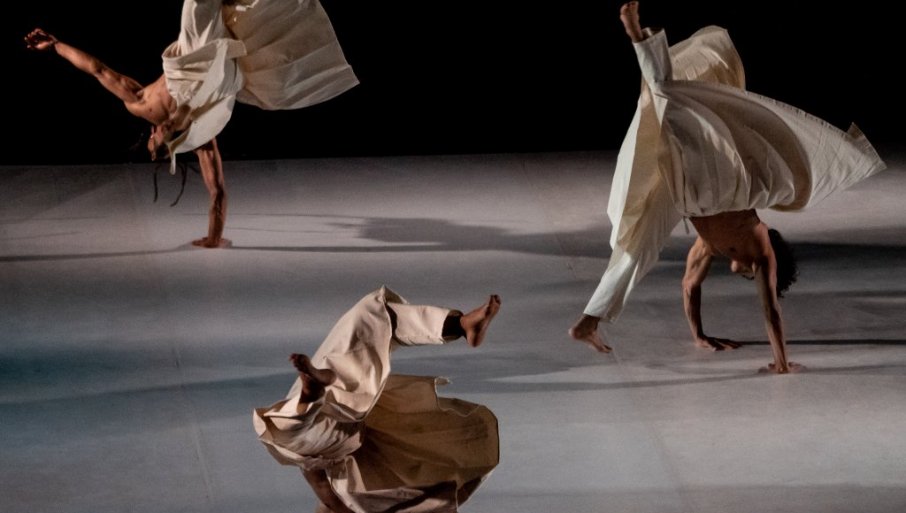 Obmotani u naizgled proizvoljne pokrete, igrači Batševa ansambla iz Tel Aviva ispituju sopstvene granice stvarajući kompoziciju sile, brzine i strasti. Stalni proces istraživanja Ohada Naharina hrani se njegovom beskrajnom radoznalošću, oštrom intuicijom i fascinacijom telom i pokretom. Komad "Tri" govori o problemima savremenog društva, ističući ulogu i snagu pojedinca. Kritičari su nazvali igrače u ovom komadu "božijim akrobatama", dok su podvlačili "hipnotišuću igru od prvog trenutka... estetsko i ushićeno iskustvo", zaokružujući svoj osvrt o "predstavi koja miluje dušu i od koje ne želite da se rastanete". Publika će ovaj komad moći da pogleda 1. i 2. aprila u Madlenijanumu, a 4. u SNP.