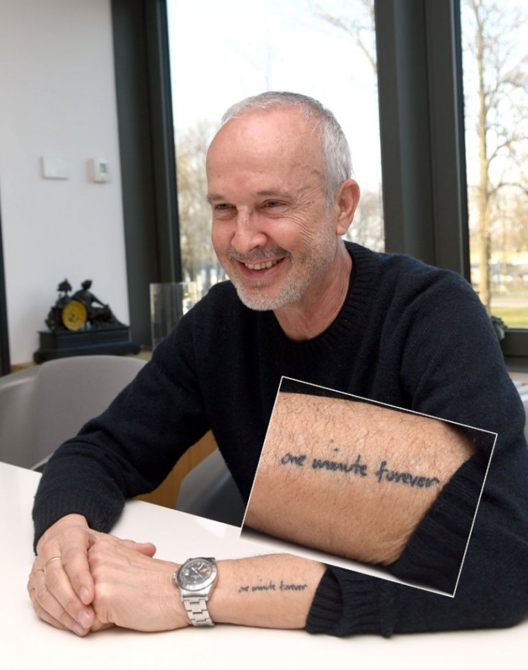 Beogradska postavka njegovih dela nosi ime "Jedan minut zauvek", a pre nego što je počeo da objašnjava važnost koju ova sintagma za njega ima, zavrće rukav i pokazuje nam da mu je istetovirana na podlaktici: