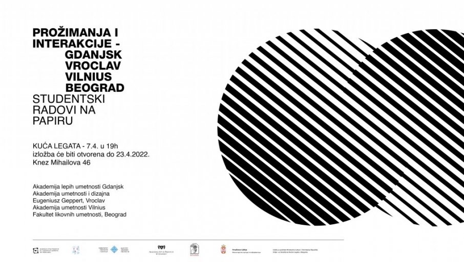 IZLOŽBA radova na papiru "Prožimanja i interakcije", studenta iz Gdanjska, Vroclava, Vilniusa i Beograda, biće otvorena u "Kući legata" (Knez Mihailova 46), u četvrtak, 7. april u 19 časova.