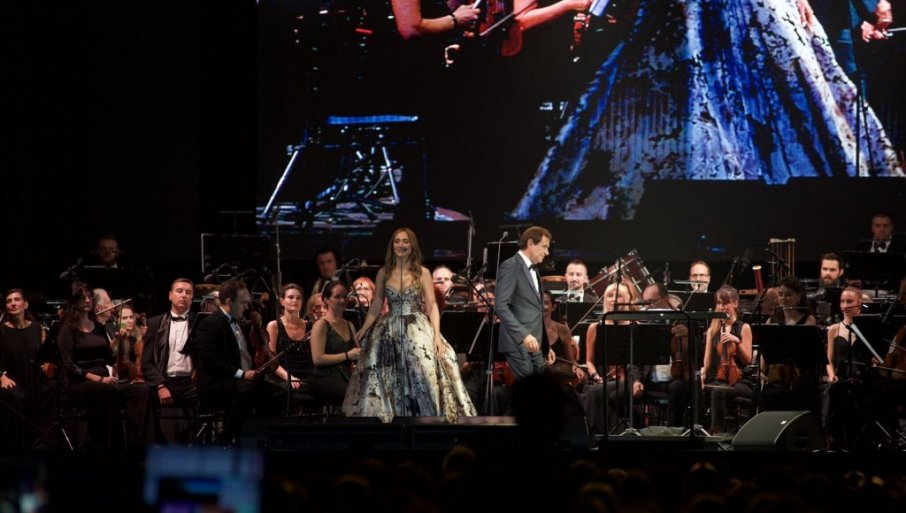 Sve je odisalo glamurom večeras u Beogradu na vodi, žene u elegantnim haljinama i muškarci u svečanim odelima imali su prilike da čuju jednog od najznačajnijih umetnika današnjice, koji je prvi deo koncerta posvetio klasičnom repertoaru. Zajedno sa sporanom Kristinom Pasaroju, Bočeli je oživljavao najlepše arije iz Verdijevih, Pučinijevih i Belinijevih opera, a violinistkinja Anastasija Petrišek je virtuozno odsvirala zimu iz Vivaldijava "Četiri godišnja doba".