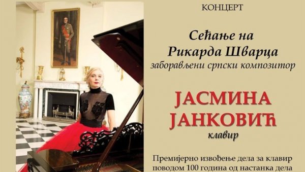 U VRNjAČKOM Zamku kulture „Belimarković“ večeras će, sa početkom u 20 sati, biti održan koncert pijanistkinje Jasmine Janković pod nazivom „Sećanje na Rikarda Švarca - zaboravljeni srpski kompozitor“.