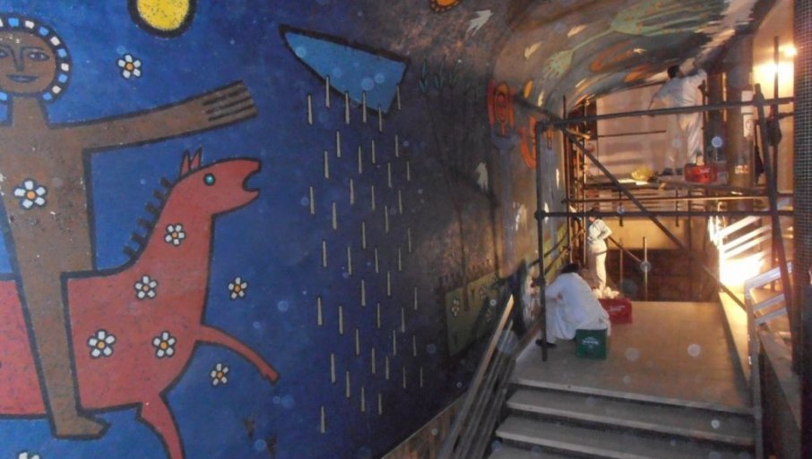 Zidna slika zauzima 16 x 6,5 metara i nosi naziv “Pesma životu”.