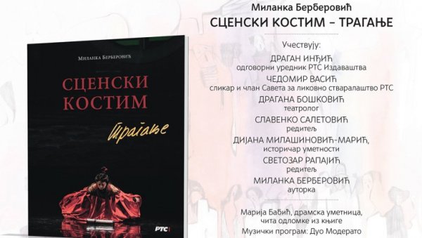 PREDSTAVLjANjE knjige "Scenski kostim: traganje" autorke Milanke Berberović (u izdanju RTS izdavaštva), održaće se u Galeriji RTS u utorak, 29. novembra. Knjiga je objavljena pod pokroviteljstvom Univerziteta umetnosti u Beogradu i Fakulteta primenjenih umetnosti.